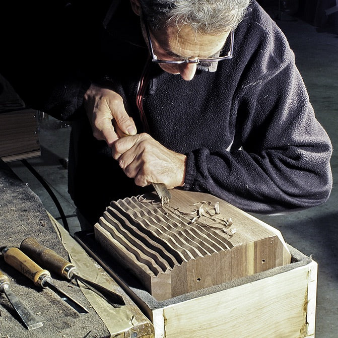 In a previous life, Alessandro Schiavi dedicated his time to designing and crafting exquisic violins for orchestral performances. Using this devote knowledge and skill, he now dedicates his time to shaping loudspeaker cabinets which personify these same musical qualities for sound reproduction which are as close to the real thing as physically possible.