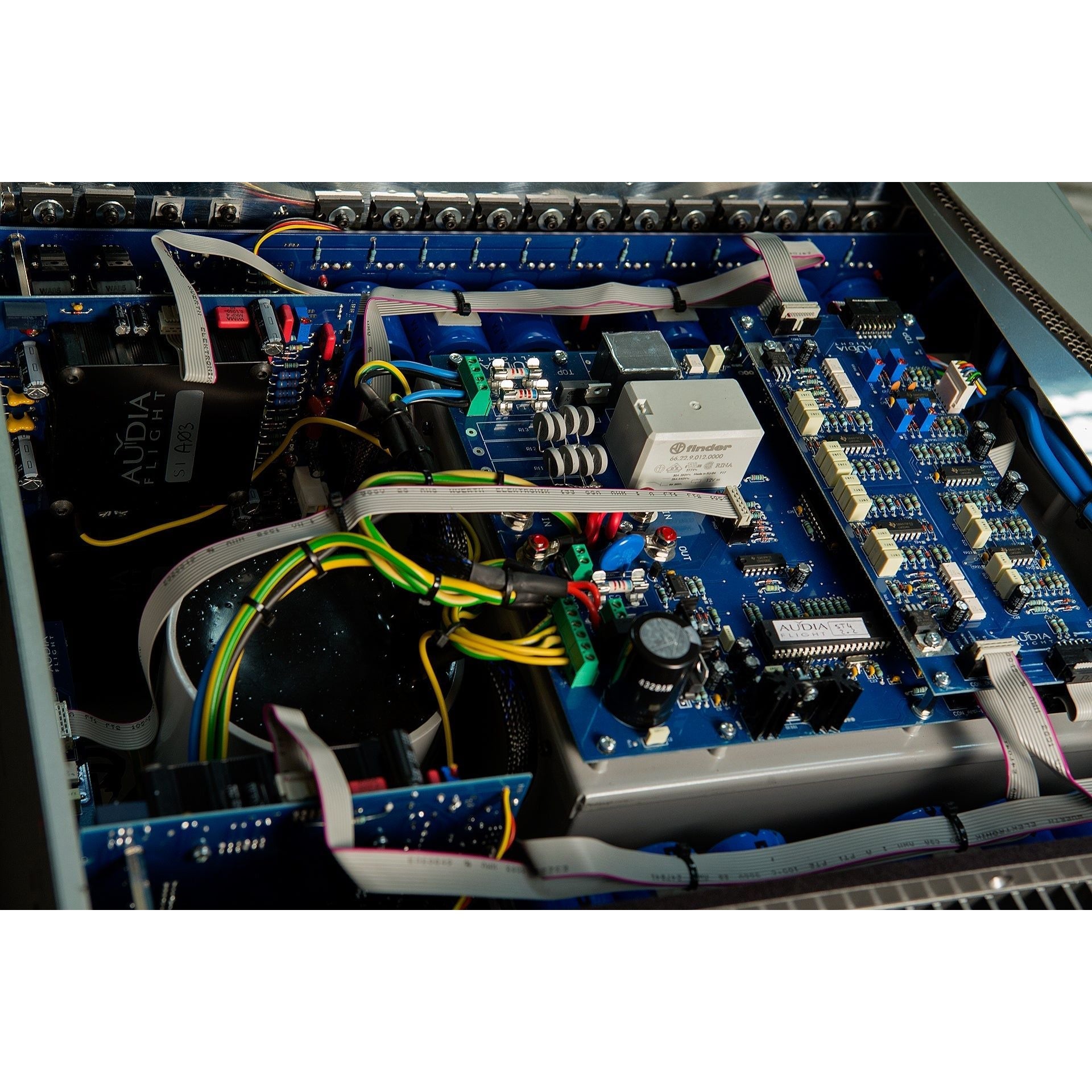 The amplifier’s gain stage is an exclusive Audia Flight design consisting of an entirely class A current-feedback circuitry.