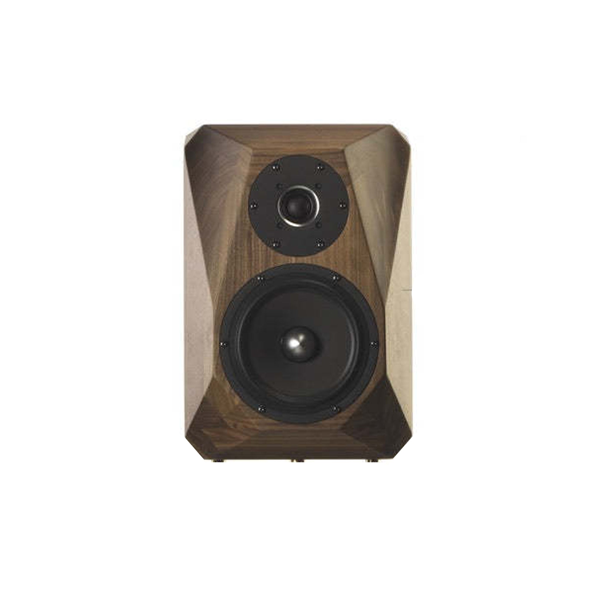 The multi-faceted shape of the Ástera model has been designed to obtain optimal acoustic dispersion and enable the circular emission of the sound waves around the speaker, achieving as ideal a point source as possible.