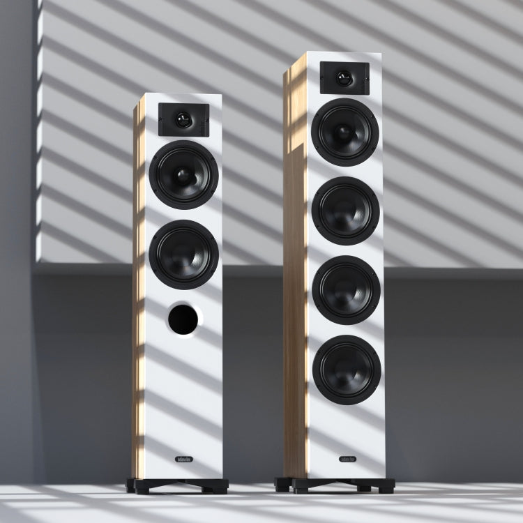 Three electroacoustic transducers with concave dust caps are responsible for processing low frequencies. They feature long, nearly 15-millimeter, multi-layer coils and thick aluminium rings to linearize inductance. These are decidedly the most powerful drive units ever used in Indiana Line floor-standing speakers. They allow for large, linear membrane excursions. The total volume of air displaced by them is comparable, if not greater, than that of the Diva 660 model from the previous generation, which was equipped with a pair of much larger, 6.5-inch woofers. Additionally, due to the size of each low-frequency transducer membrane used in the Diva 6 speaker column, they move exceptionally quickly and precisely while maintaining low distortion levels, even at high sound levels.